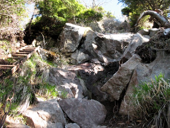 三笠神像があるはずだったが、通り過ぎてしまったらしく、いきなり千鳥返しの鎖場に出てしまった。(6:36)