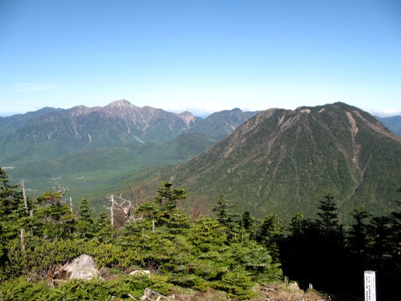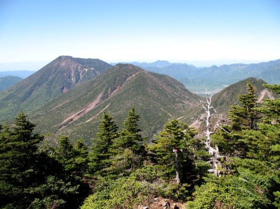 山頂からは太郎山とその奥に白根山がよく見えた。 |