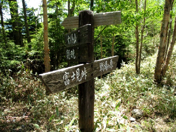 前回このコースを歩いたとき、ここを富士見峠に向かってしまいえらい目にあった。今回は迷いなく「戦場ヶ原→」に向かう。 |