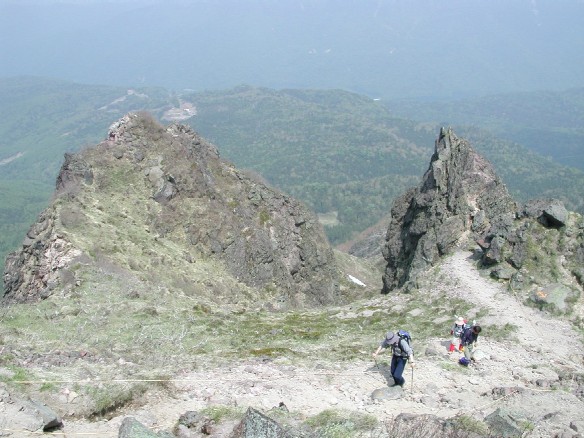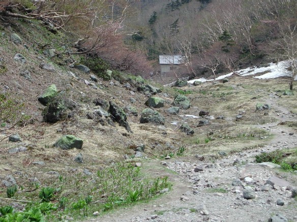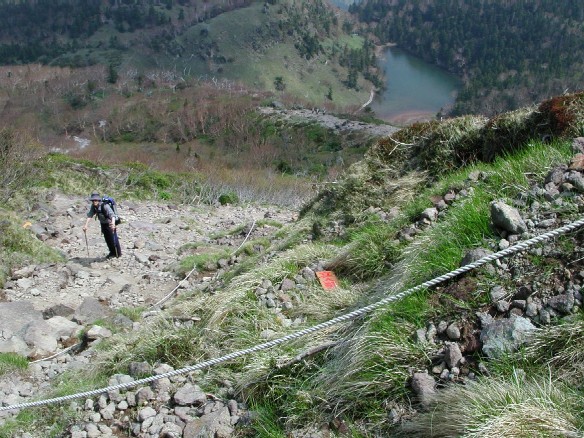 登ってきたのは北側の斜面だが、帰りは南側の斜面を非難小屋を目指して下山。
